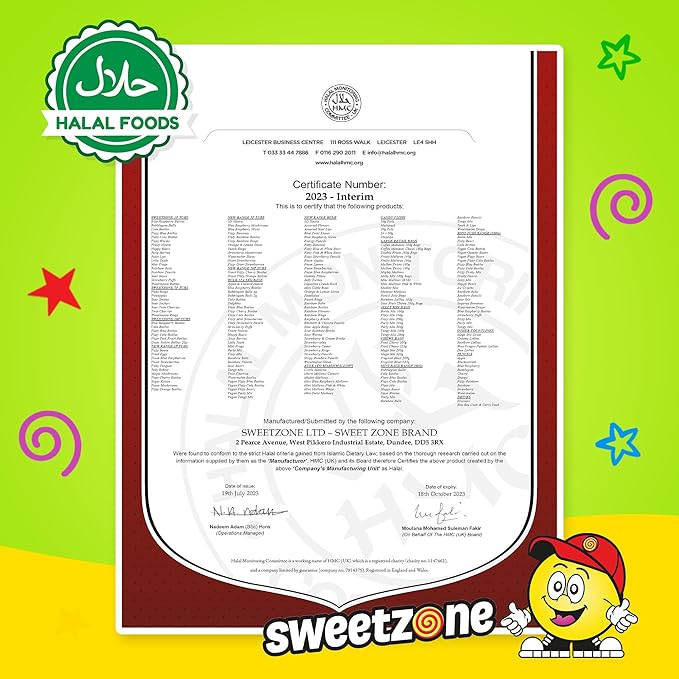 Glucose Syrup, Sugar, Beef Gelatine (Halal), Corn Starch, Fruit Juices (Apple, Strawberry) (2%), Citric Acid, Malic Acid, Flavourings, Colours (E100, E160iii, E163, E141, E133, E171, E129, E150a)