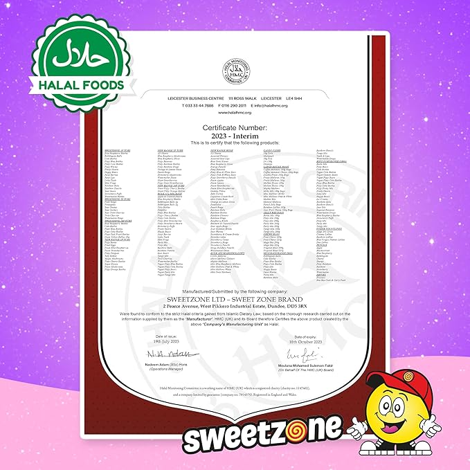 Glucose Syrup, Sugar, Beef Gelatine (Halal), Modified Corn Starch, Apple Juice from Concentrate (1%)Acid: Citric Acid, Flavourings, Colours: E171, E129