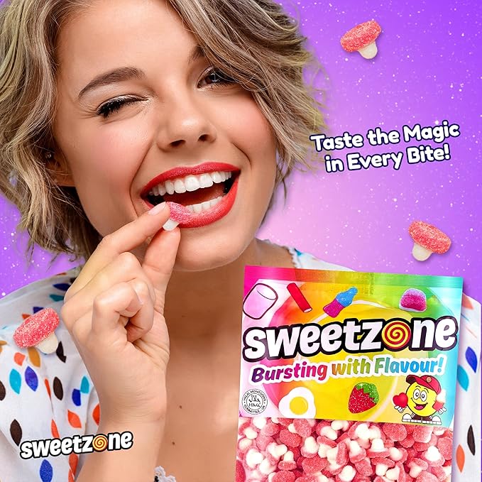 Soft, chewy, and sprinkled with tangy sugar – these fruity mushroom-shaped sweets are a fizzy twist on a classic favourite.