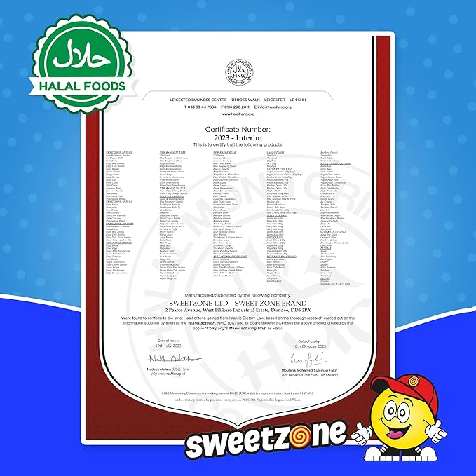 Glucose Syrup, Sugar, Water, Beef Gelatine (Halal), Modified Potato Starch, Acids (E330, E270), Gelling Agent (PECTIN), Flavourings, COLOUR (E133)