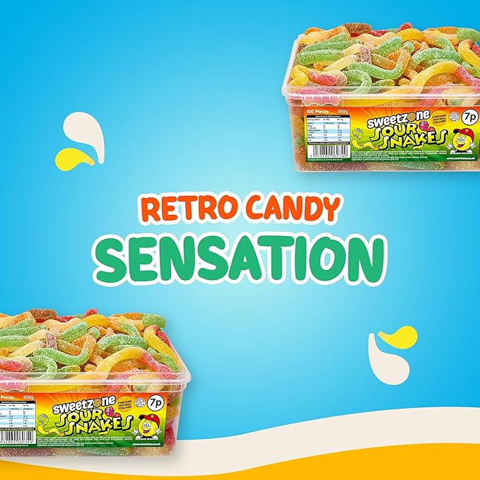 Long, wriggly, and full of fruity flavour! These chewy snakes are dusted with a tangy sour coating for a bite that’s as zesty as it is fun.